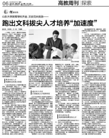 5月27日,《中国教育报》报道了我校近年来充分发挥学科齐全、文史见长的优势和特色,不断探索与改革,形成了具有中国特色、山大风格的新文科育人模式。