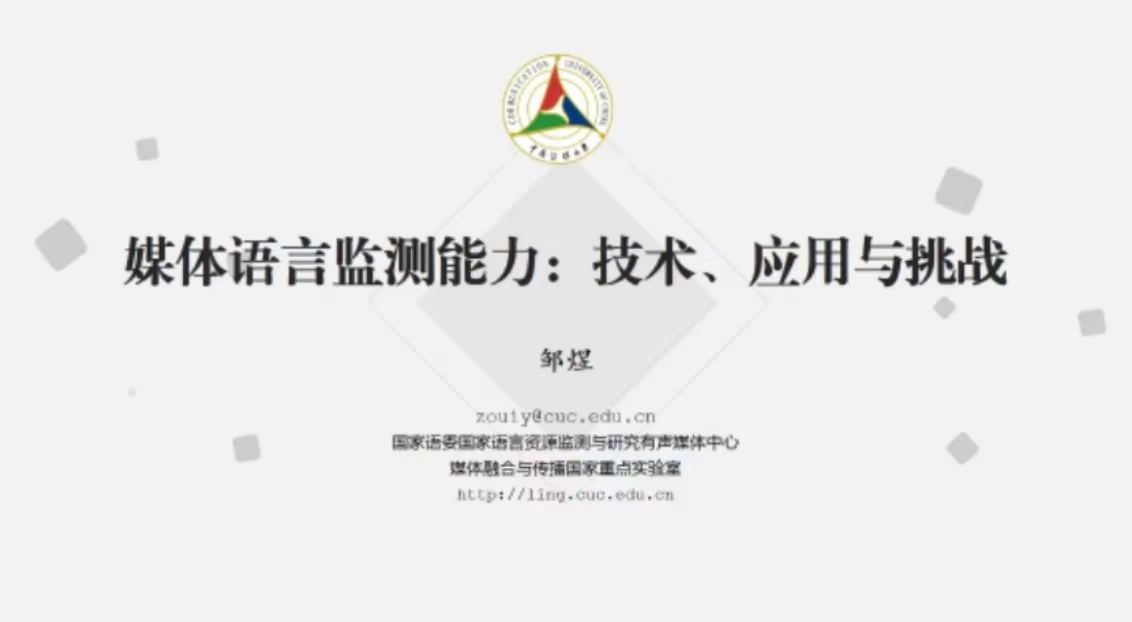 12月13日晚,中国传媒大学邹煜教授做客awc777万象城娱乐官网2022年第7期“环球论坛”,通过腾讯会议线上平台作了题为“媒体语言监测能力:技术、应用与挑战”的报告。本次讲座由awc777万象城娱乐官网副院长刘洪东教授主持,来自校内的200余名师生共同参与了本次讲座。