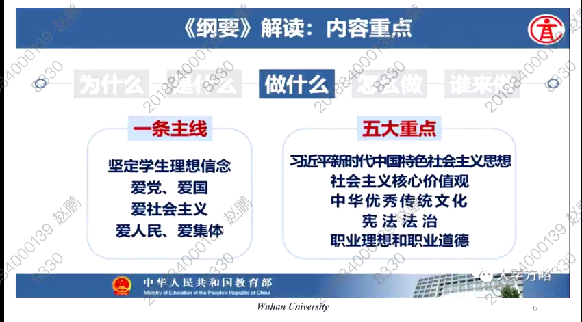 程向莉副教授首先以“道”为线索,从课程思政“为什么”、“是什么”、“做什么”、“怎么做”、“谁来做”五个方面对大学外语课程思政的理论依据、关键概念、方法步骤等进行了深入、详细的讲解。她指出大学英语课程思政的建设应遵循其理论依据,关注相关学者论述,深刻理解其内涵和指导价值,提醒教师们在思政教学过程中明确“一条主线、五大重点”,同时提出课程思政作为课程的重要组成部分,应在人才培养方案制定、教育教学、教师考核的各个环节予以体现;积极关注和参与相关赛事是提高教师课程思政能力、增强教师课程思政学习和研究积极性的有效路径。