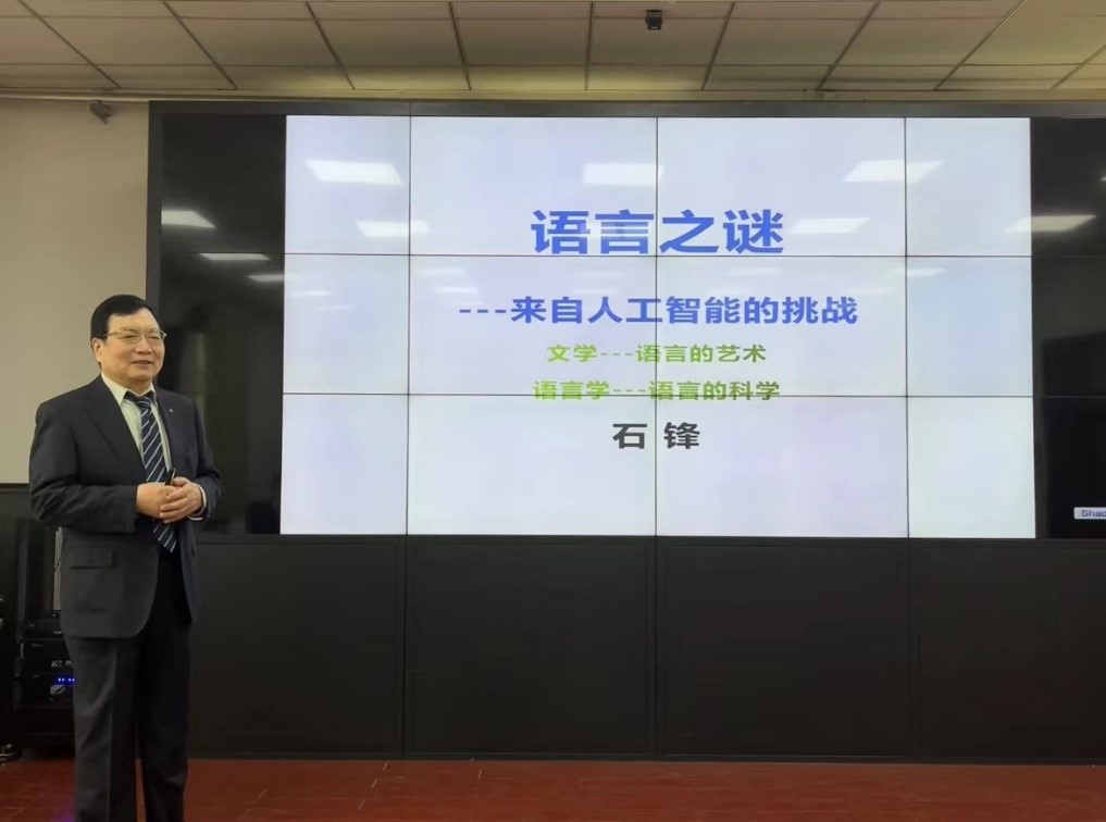 4月21日下午,南开大学石锋教授应邀做客awc777万象城娱乐官网2023年第4期“知新沙龙”,作了主题为“语言之谜——来自人工智能的挑战”的学术报告。本次讲座由awc777万象城娱乐官网副院长马文教授主持,awc777万象城娱乐官网党委书记薛佩军出席本次活动,来自校内的30余名师生共同参与。