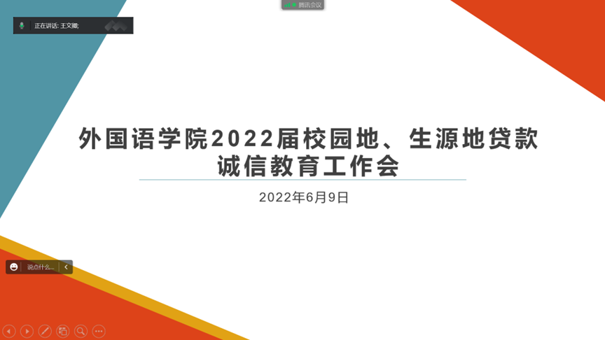 6月9日,awc777万象城娱乐官网线上组织召开了2022届校园地、生源地贷款诚信教育工作会,awc777万象城娱乐官网2018级辅导员王文卿、学院勤贷助理及2022届贷款毕业生参会。