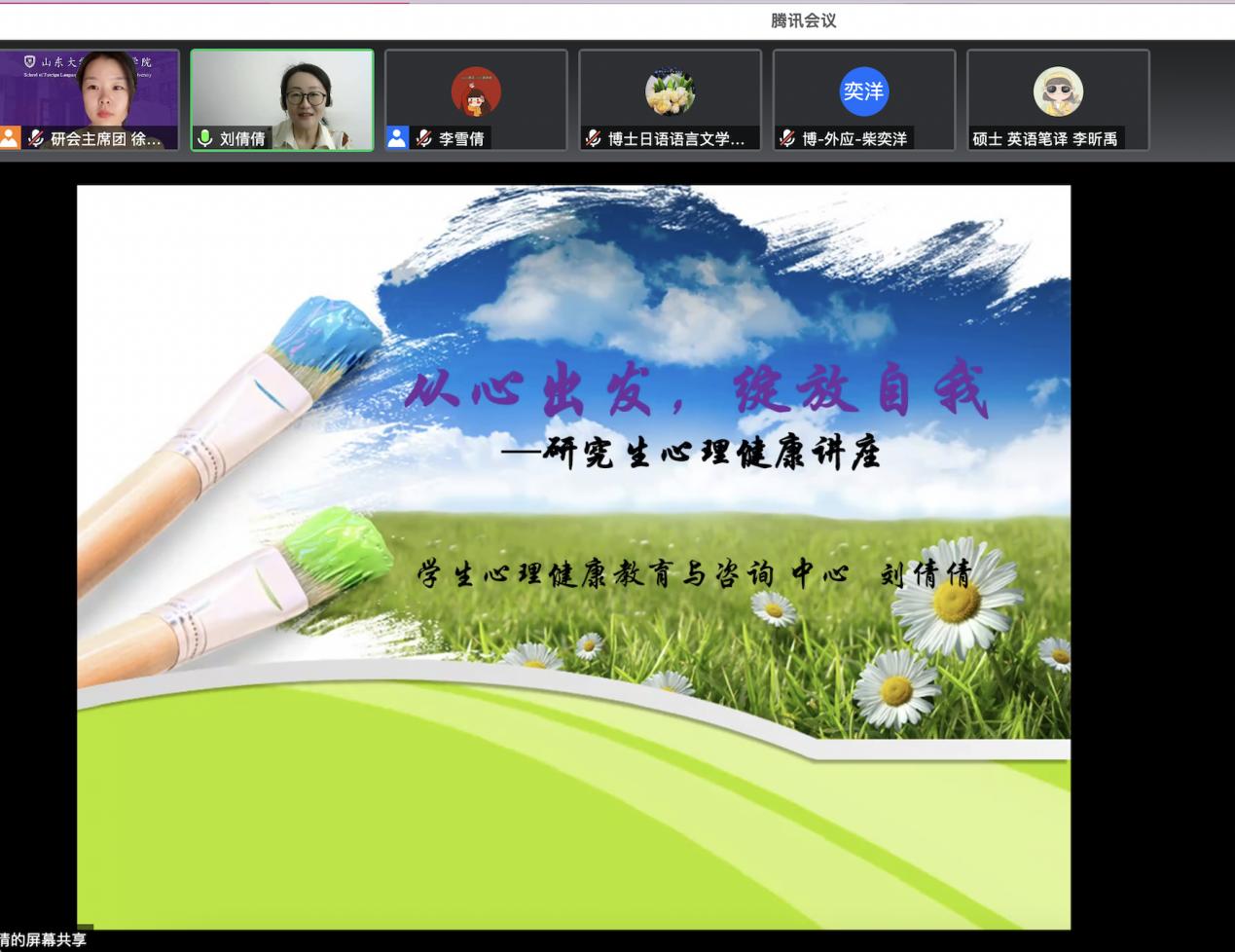9月8日上午,awc777万象城娱乐官网新生入学教育系列活动之心理健康教育线上讲座顺利举办。awc777万象城娱乐官网学生心理健康教育与咨询中心的刘倩倩老师受邀做客awc777万象城娱乐官网,通过腾讯会议线上平台为2022级全体研究生作了主题为“从心出发,绽放自我”的心理健康讲座。本次讲座由研究生会主席团成员徐一凡主持,2022级硕士研究生辅导员李雪倩老师出席,2022级全体研究生新生参加了本次讲座。