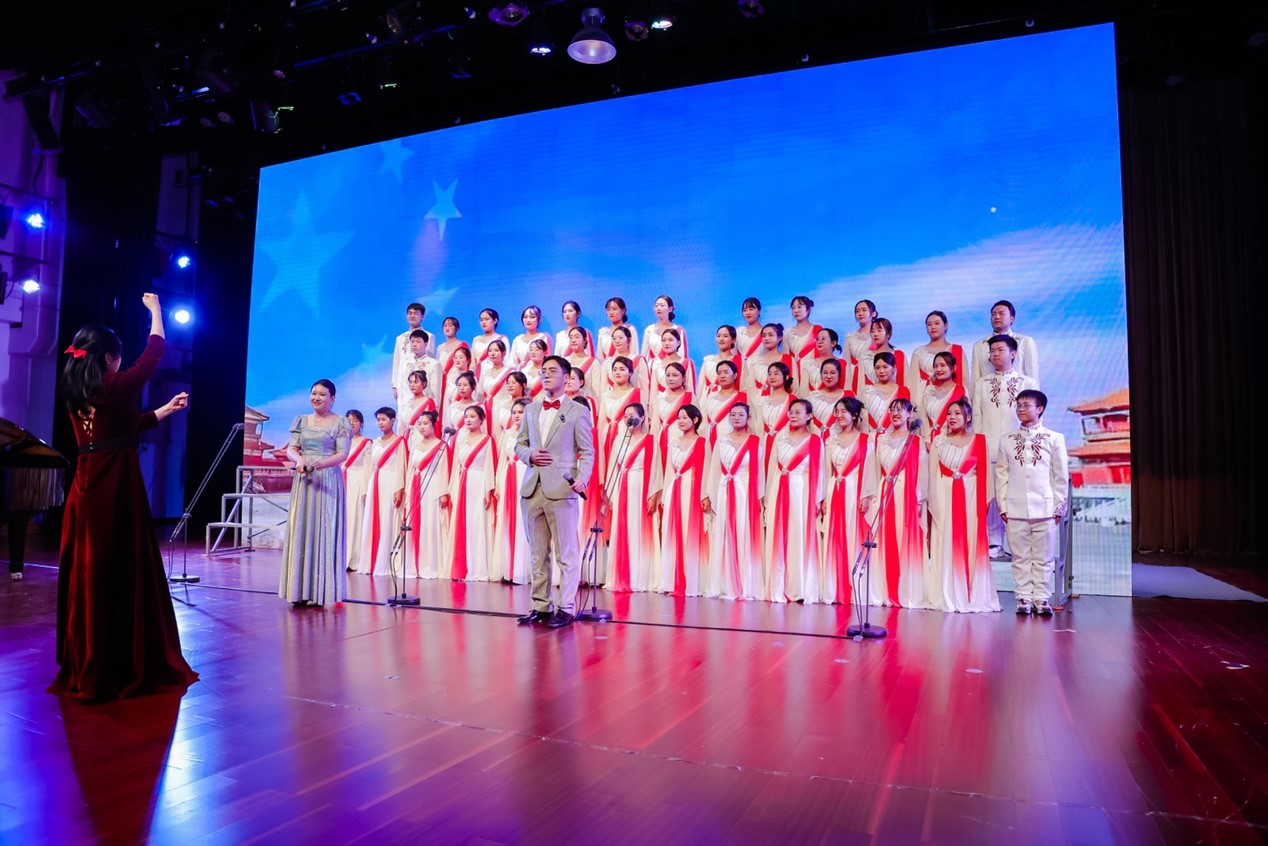 外院合唱队表演曲目为《不忘初心》,参赛师生经过半个月紧张刻苦的训练,最终以饱满的精神面貌呈现了合唱表演。比赛时,合唱队成员热情高涨,士气十足。万水千山,不忘来路;树高千尺,根在沃土。舞台之上,合唱队以坚定从容的身姿展现新时代新青年的风采,以深情动听的歌声诉说红色基因的魅力,始终牢记不忘初心的使命,不忘党和人民殷切的嘱托。