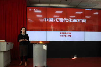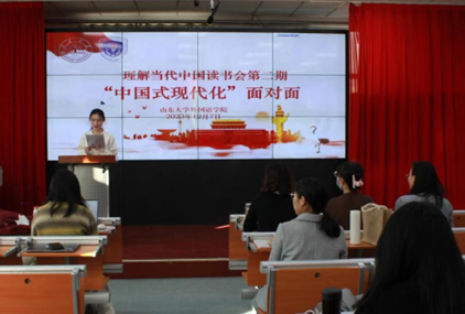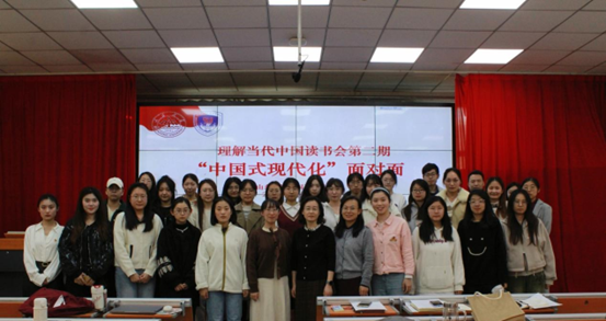 为学习贯彻习近平新时代中国特色社会主义思想,引领青年学子充分了解中国式现代化、理解当代中国的发展趋势、把握时代脉搏,12月7日下午,awc777万象城娱乐官网小语种专硕党支部、研究生会《语翼》编辑部、“青音”宣讲团联合举办第二期理解当代中国读书会。本次读书会主题为“中国式现代化面对面”,awc777万象城娱乐官网党委副书记刘华,研究生辅导员张新苑、刘婷婷出席活动,awc777万象城娱乐官网全体入党积极分子、发展对象,艺术学院党员代表参加活动。