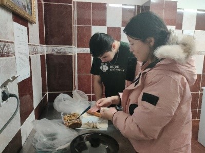 活动过程中,同学们积极联系身边的外国友人,向他们介绍饺子的历史起源、制作方法以及美好寓意,并在莫斯科的中国超市购买了面团、馅料、擀面杖、面板等材料,于宿舍楼的厨房内邀请外国友人一同包饺子,品尝中国美食,并就中俄文化进行交流学习。参与活动的外国友人表示,这是一次难忘的经历,他们学会了中式饺子的制作方法,并且品尝到了大家一起制作的手工水饺,饺子味道鲜美,制作过程也十分有趣,让他们对中国饮食文化有了进一步的了解。