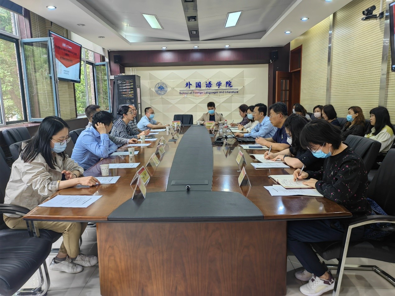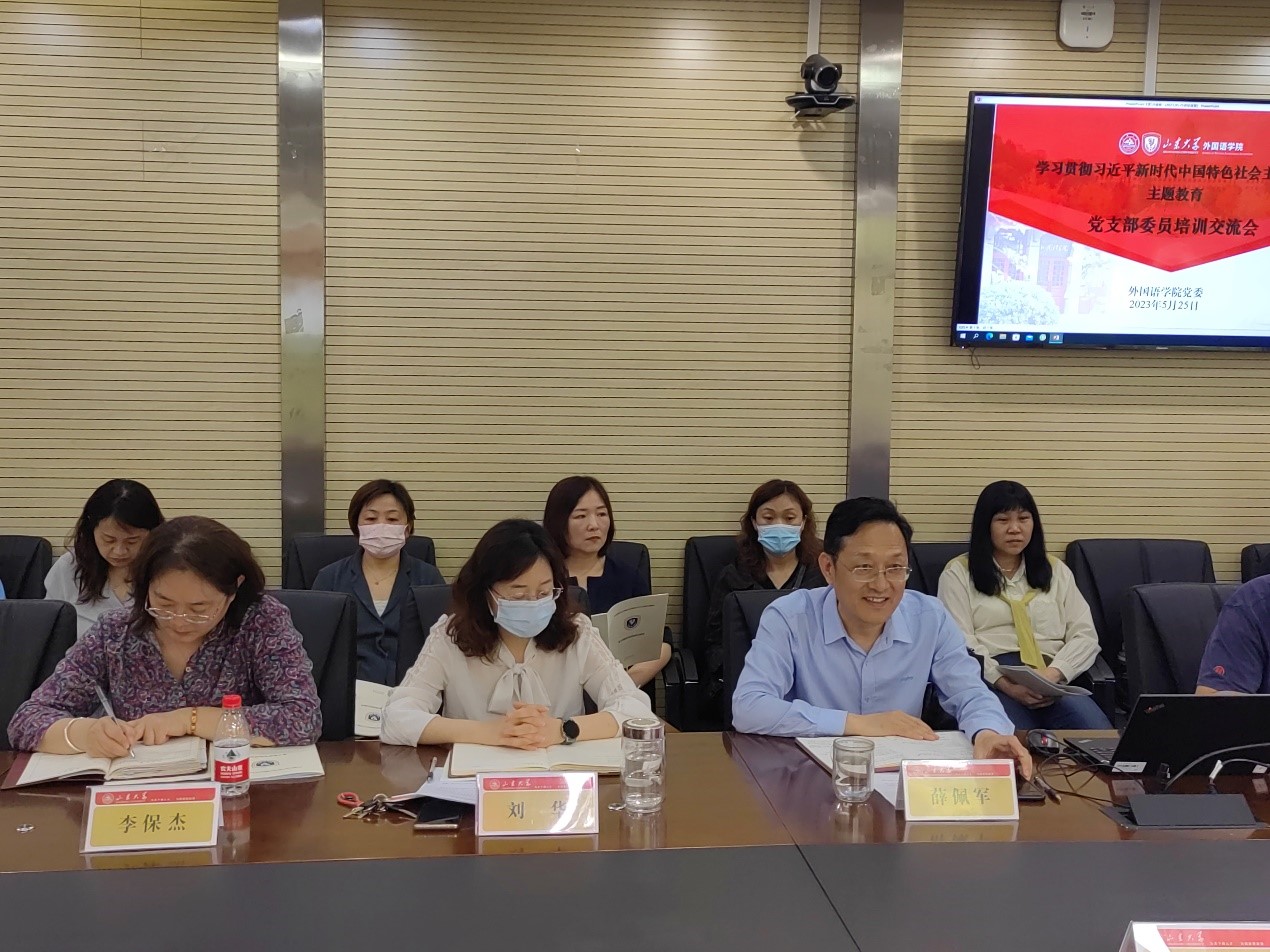awc777万象城娱乐官网翻译学研究团队党支部书记胡志军介绍支部工作。近期,与英语口译与翻译学硕士党支部、英语笔译硕士党支部联合开展主题党日活动,积极探索“党建+科研”师生联学模式,促进教学育人与教师发展,助力翻译学研究团队建设。