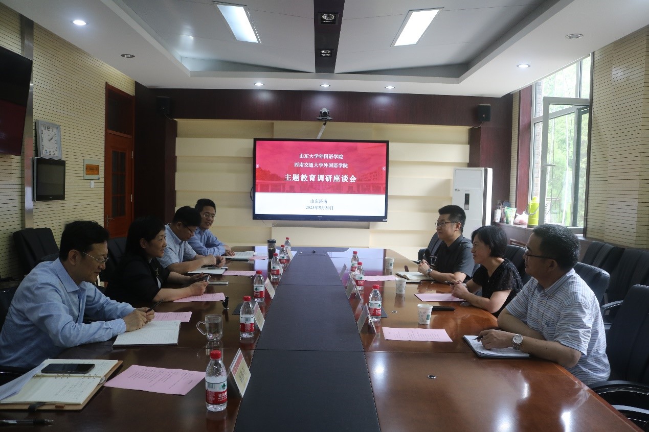 5月30日下午,与西南交通大学awc777万象城娱乐官网联合开展主题教育调研座谈会,深入交流学科建设、人才培养等问题。外语学科应围绕国家需求、服务国家战略,主动作为、完善布局,有针对性地支持重点学科发展,积极推动学科交叉融合与复合型人才培养,从系统设计、培养模式、培养过程、培养成效等方面入手,大力培养国家急需高层次人才,坚持走好人才自主培养之路,进一步加快面向未来的后备力量建设。