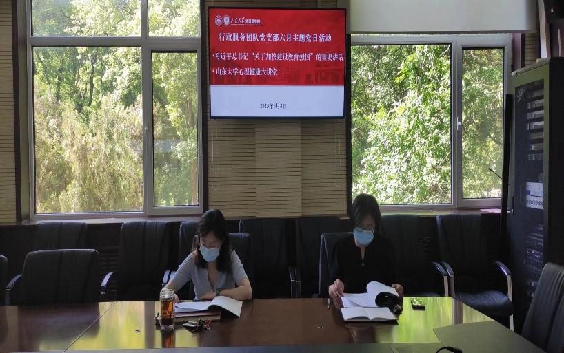 6月8日,学院行政服务团队党支部开展主题党日活动,集体学习了习近平总书记在中共中央政治局第五次集体学习会议上的重要讲话精神,党支部书记马蕾主持会议。学院党委副书记刘华到会指导联学。